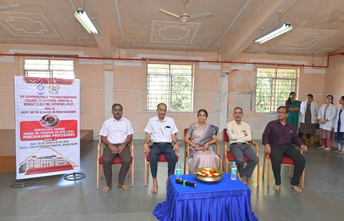 Sri Dharmasthala Manjunatheshwara Ayurveda College, Hospital and Research Centre, Kuthpady, Udupi, through the PG Department of Panchakarma, organized a Certificate Course on Hands-on Training in OPD-level Panchakarma Procedures from February 5 to 7.