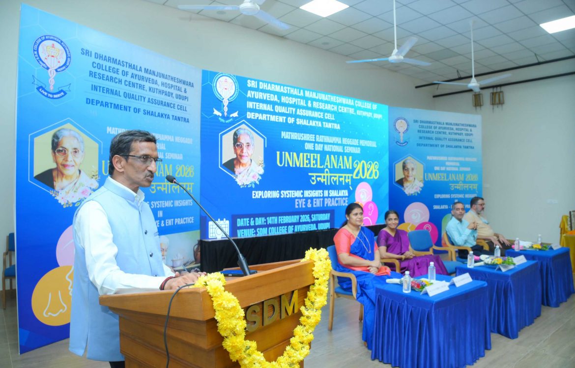 The Department of Shalakya Tantra of Sri Dharmasthala Manjunatheshwara College of Ayurveda, Hospital and Research Centre, Udupi has organized a one-day Mathrushree Rathnamma Memorial National seminar “UNMEELANAM 2026” – Exploring Systemic Insights In Shalakya – Eye and ENT Practice on 14-02-2026.