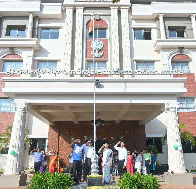 77th Republic Day was celebrated at Sri Dharmasthala Manjunatheshwara Ayurveda College, Hospital and Research Center, Udupi. As the chief guest, Alumni of SDM College of Ayurveda and Physician, Durga Clinic Dr Yogish Shetty graced the occasion with his presence and hoisted the national flag. He addressed the gathering focusing on the young Ayurveda doctors, who play a vital role in advancement of Ayurveda. Hence it is really necessary that they understand their responsibility towards the society.